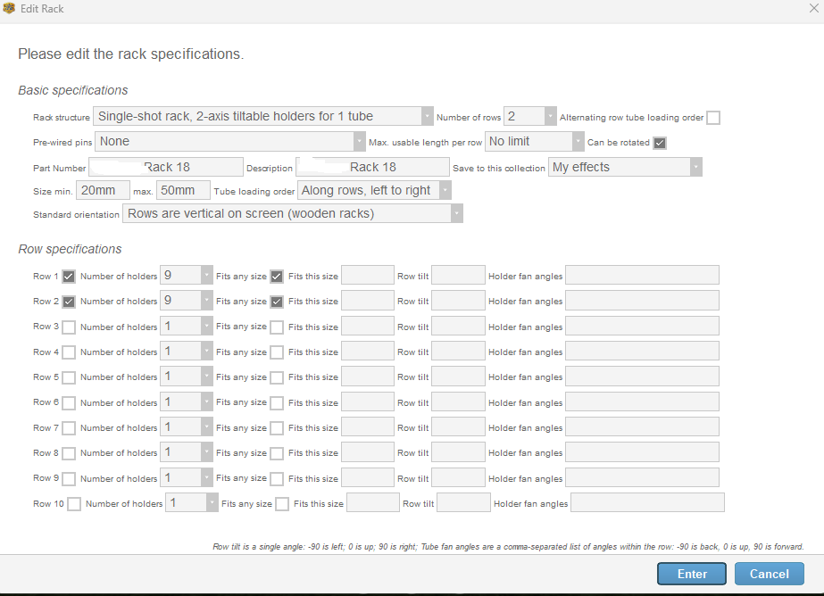 Looking at your screenshots, size and type don’t appear to be the issue. And given the rack structure you’ve selected, angle also seems unlikely to be the problem. The screenshots don’t show the Rack Type column in the effects and script windows, so rack type could potentially be the issue.